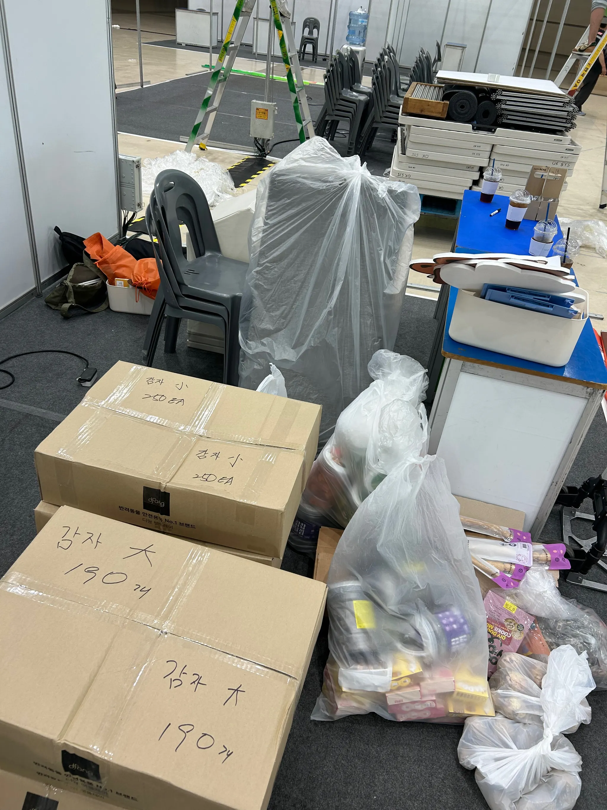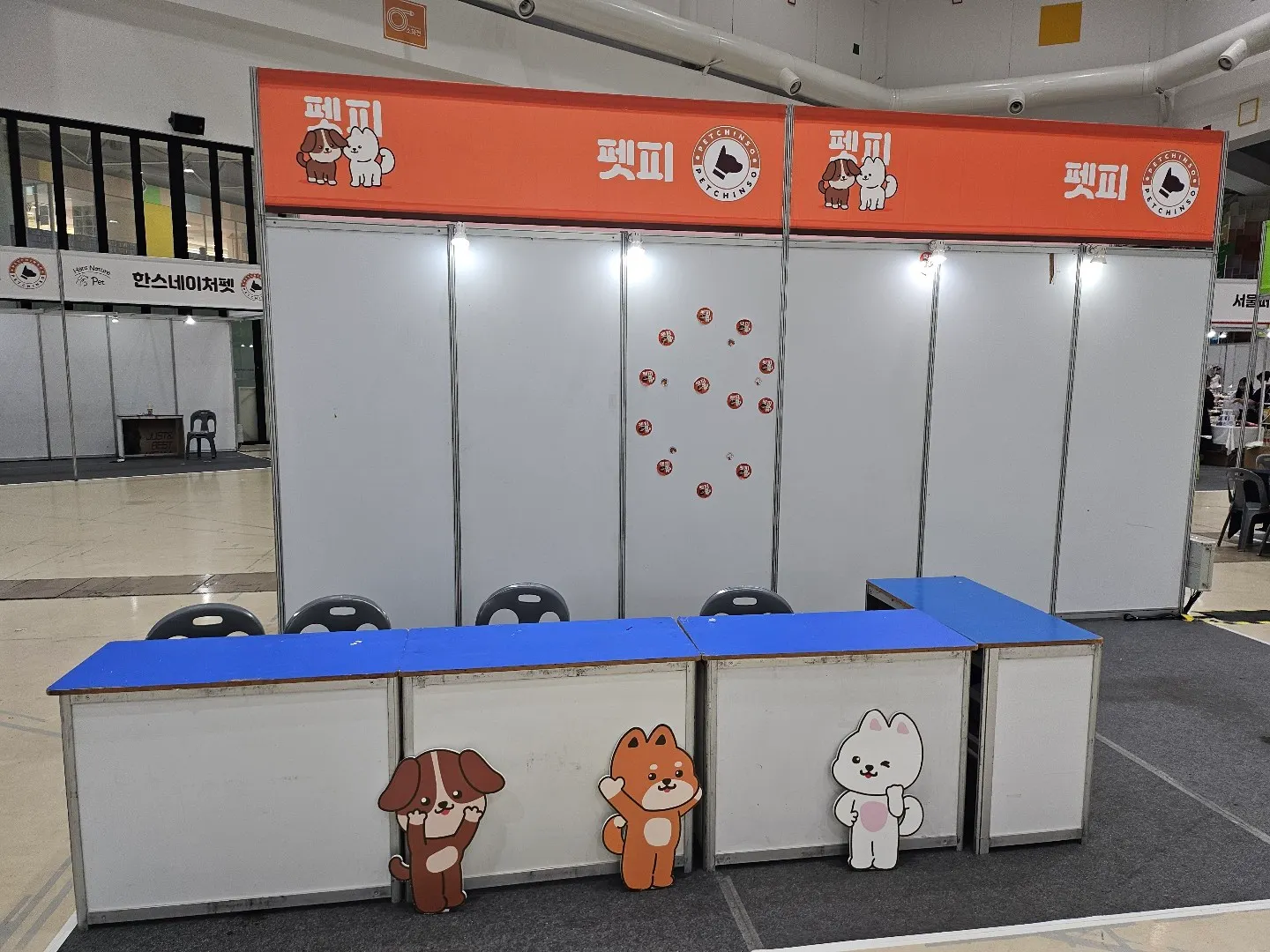 전 날 도착해 펫피 부스 셋업 중이예요!! (옆에는 저희 리브님, 우니님, 채린님